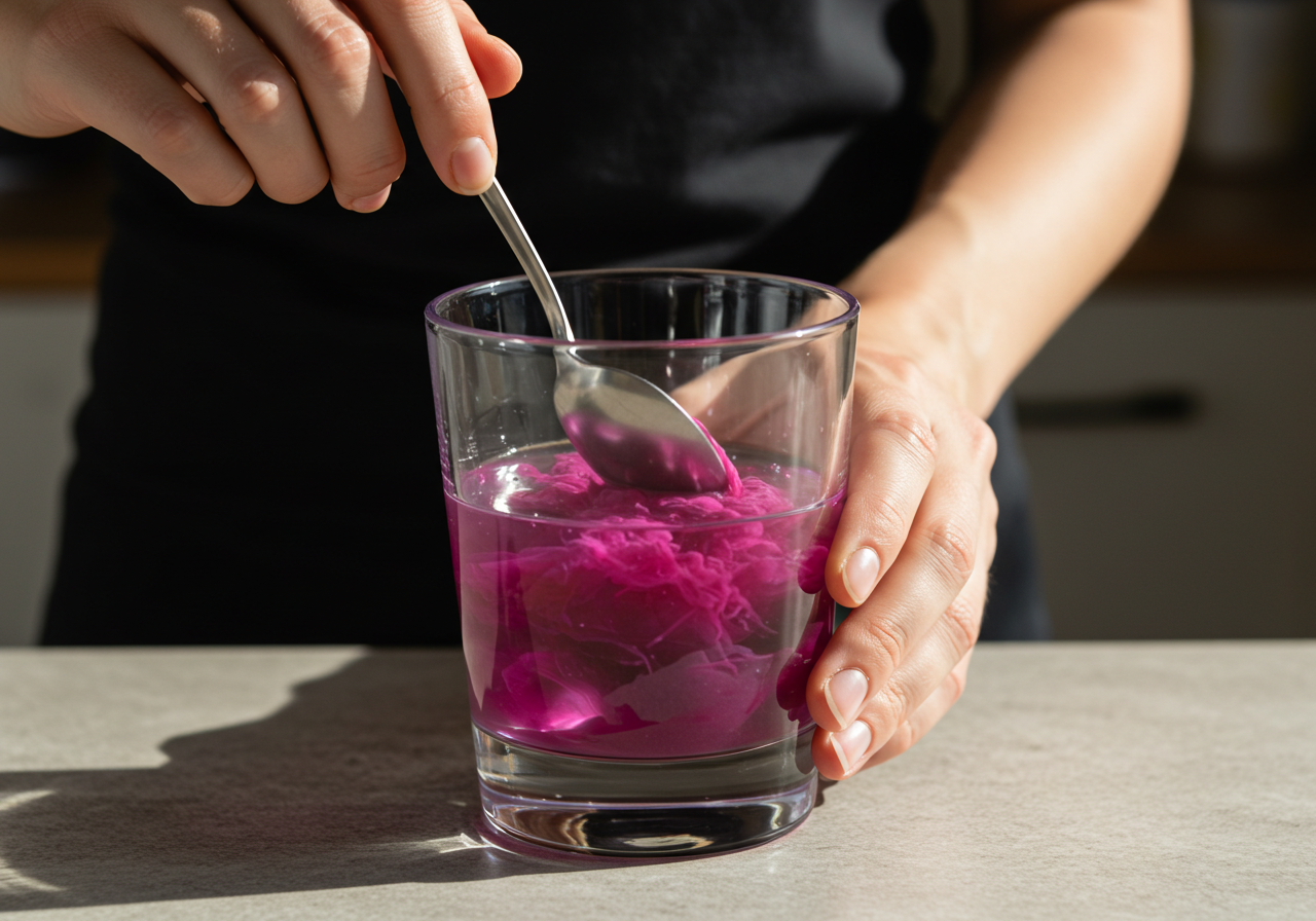 Ensure the powder is fully dissolved for refreshing berry-flavoured drink.